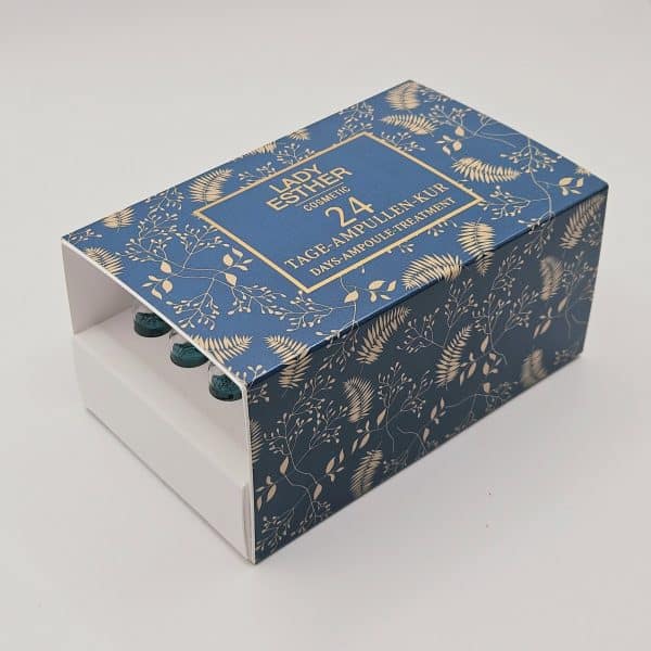 LADY ESTHER Ampullenkur mit je 4 x Wirkstoffampullen: Hyaluron, Caviar Extract, Anti Aging Concentrate, Eye Contour & Lip Fluid, Super Regeneration Extract, und Spit Second Tightener. Die Art der Zusammensetzung und Abfolge der Anwendung ist auf die anspruchsvolle Haut abgestimmt. Die besonders konzentrierten Wirkstoffe spenden extra viel Feuchtigkeit und vitalisieren den Teint. Nach dieser Kurbehandlung werden Sie sich รผber ein sichtbar feineres und frisches Hautrelief freuen kรถnnen! Auch als Adventskalender anwendbar!